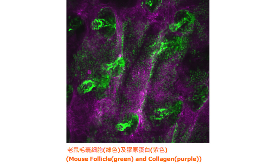 By the advantages of multi-photon imaging technology, JadeBio can inspect various living samples and directly observe physiological phenomena such as the repairing phenomenon of mouse hair follicles, the distribution of mouse brain nerves, and the pathological condition of the eye surface cells of the mouse, etc...