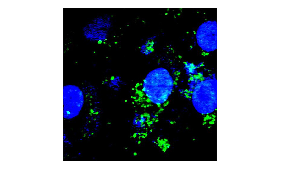 Whether the drug particle is correctly uptake by the target cell is critical evidence in pharmacodynamics. Through the optical sectioning capability of JadeBio, we can easily indicate the uptaking when showing the overlapped images once we label the cell and the drug particle in different colors. Furthermore, through high-resolution imaging of JadeBio, we can investigate which organelle is interacting with the drug particles.