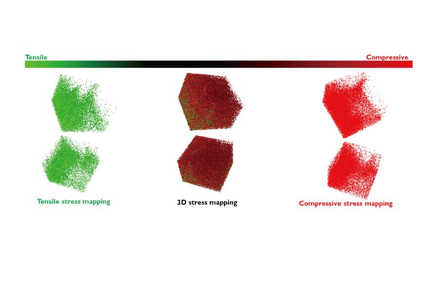 原先認為均質的4H-SiC基板,在我們有深度資訊的量測下,發現在深層的時候,晶格結構漸漸轉換成3C,這是其他量測無法辨別的。同時,透過峰值分析,我們可以計算出晶片應力在三維結構中的詳細分佈。