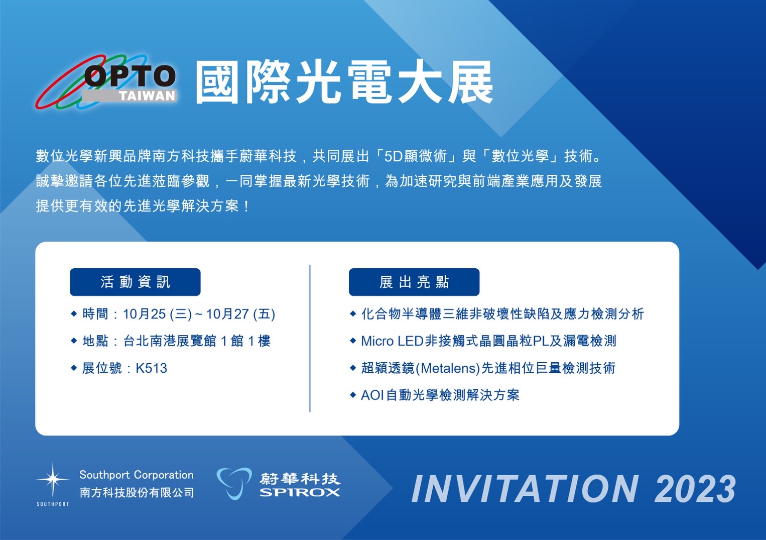 [Southport-Exhibition Information] 2023 OPTO Taiwan International Optoelectronics Exhibition