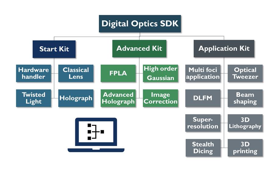 針對不同背景的使用者,南方科技的數位光學軟體開發套件進一步區分出幫助未來學生快速學習光學的入門套件(Start kit),讓學研單位更容易使用數位光學的進階套件(Advanced kit),以及幫助產業人員快速導入應用的應用套件(Application kit) 。